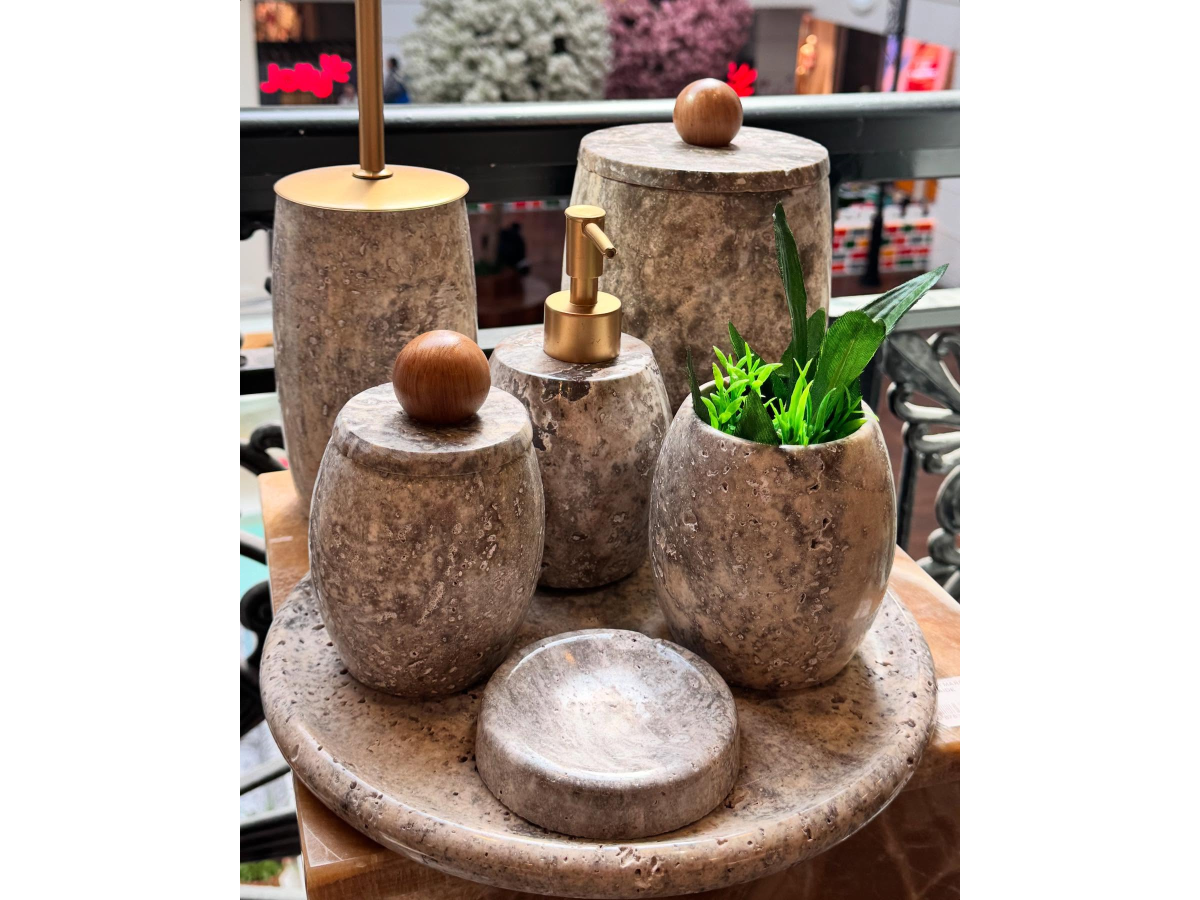 7 PARÇA GÜMÜŞ TRAVERTEN BANYO SETİ