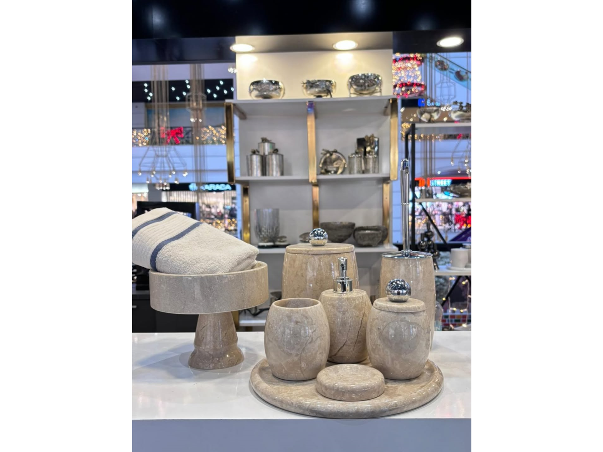 BEJ MERMER OVAL MODEL 8 PARÇA BANYO SETİ