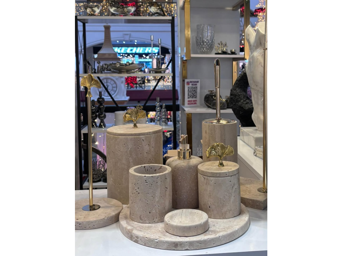 SARI TRAVERTEN 9 PARÇA KLASİK MODEL BANYO SETİ