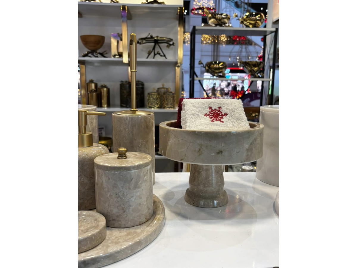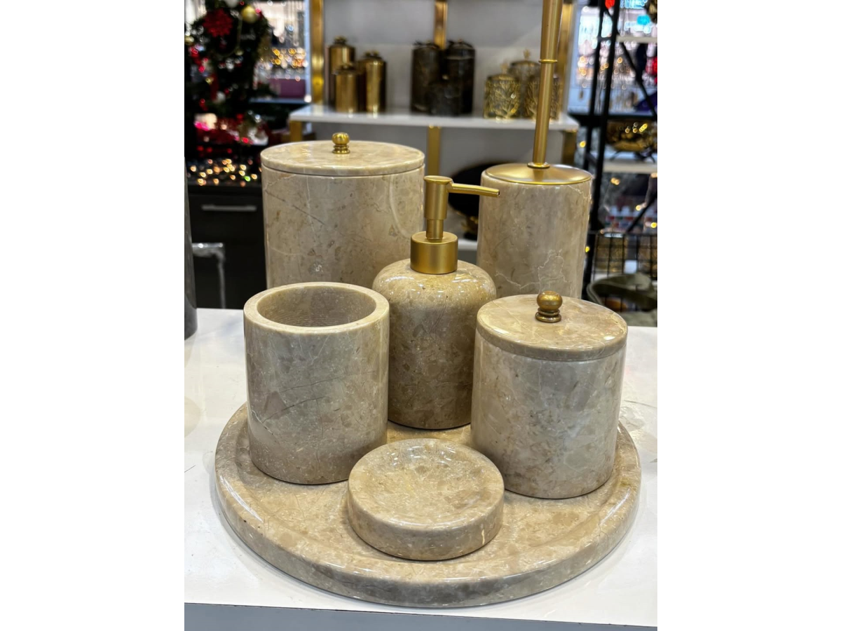 8 PARÇA BEJ RENK MERMER BANYO SETİ